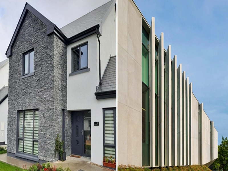 Dry stone cladding is a facade system that uses natural stone. Dry stone cladding is valued for its durability, weather resistance, and minimal maintenance. It also enhances thermal and acoustic insulation while offering an eco-friendly solution, as natural stone is a sustainable material. Often used in both residential and commercial projects, it combines aesthetic appeal with structural strength.